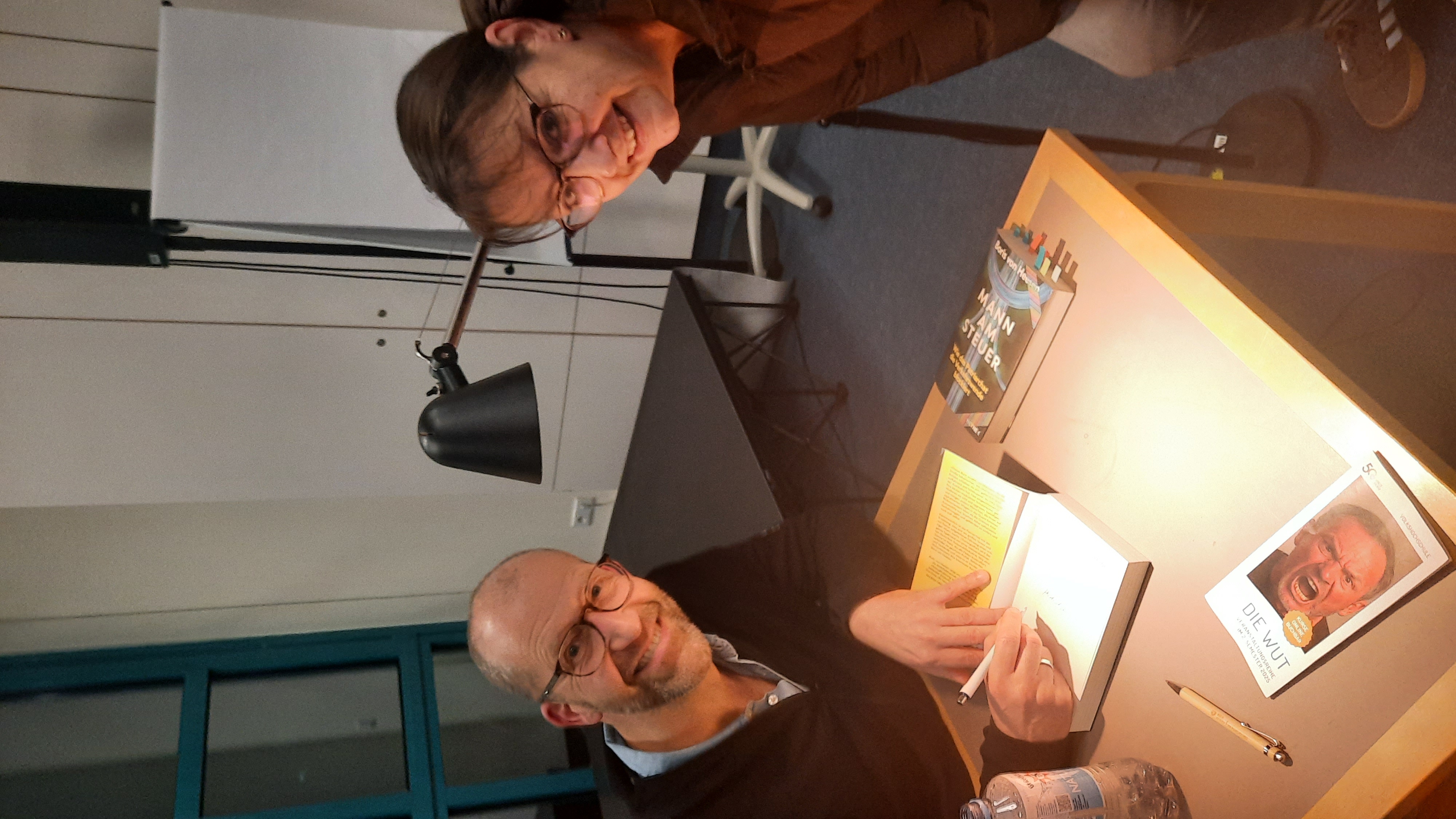 (im Bild signiert von Hessen gerade ein Buch für Tamara Argento)